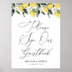 Vattenfärgscitron grey blommigt bröllop, guestbook-tecken. Texten och färg kan redigeras.