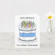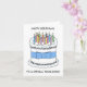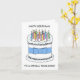En enkel illustration av en vit, iögonfallande födelsedagskalas med en blå bugg bunden runt den och flera tända ljus överst. Ord "Grattis på födelsedagen till en speciell rundtur" följer med bilden som har en vit bakgrund.