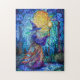 Glaskonst i en trollkarl i en skog med magiska föremål och personal.