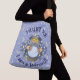 Gammal guide med blått liggande tittar vid kristallmagi boll.
