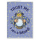 Gammal guide med blått liggande tittar vid kristallmagi boll.