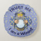 Gammal guide med blått liggande tittar vid kristallmagi boll.