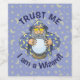 Gammal guide med blått liggande tittar vid kristallmagi boll.