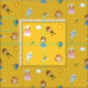 Mönster omfattar Dorothy, Toto, Tin Man, Fågelskrämma, Cowarely Lejonare, Glinda, Bra Witch, regnbåge, moln, sol, ballong och paraply på gultens tegelbakgrund.
