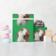 Svälla pappert med ett foto av söt guinea gris ansikte på gröntens bakgrund