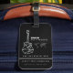 Elegant svart påse-märkre med gitarr, mallar för namn och anpassningsbar linjer av text... för att hjälpa till att identifiera bagaget hos en guitarman för snyggt när han reser för utställningar värld runt
