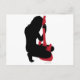 Silhouette av en tjej med gitarr. Flickan är i svart och gitarr är i rött.