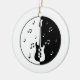 Svart och vit utformning av en elektrisk gitarr med musik noter. Användan anpassar knapp för att anpassa.