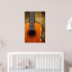 En akustisk gitarr med grym bakgrund och ord "Guitar" löper ner på högerna av bilden.