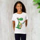 Om du aldrig har sett en gitarr spela upp dinosaurie, så kolla in den här designen som innehåller en grönt dinosauer som spelar gitarren. Den här dinosauren är mycket musikalisk och verkar njuta av att spela gitarr i verkligen. Den här gitarren som spelar dinosauyrdesign ser underbar ut på den här flickans t-shirt. Perfekt för dig själv eller som gåva