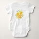 Blomster tema enhörning baby bodysuit. Den har en akvarell illustration av en söt enhörning med en gul blomster krona. Personifiera genom att lägga till ett namn eller en kort fras. Denna gula enhörning bodysuit är perfekt som en personlig gåva.