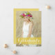 Meddela din examen till familj och vänner med detta anpassningsbara examenskort. Den har modern vit kalligrafi på en gul akvarellbakgrund. Anpassa detta examenskort med ditt foto, namn och skolnamn. Detta fotoexamen-kort är perfekt för gymnasie- eller högskoleexamen.