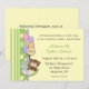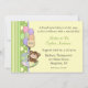 Baby showerinbjudan för flicka eller pojken med grönt- och gultpolka pricker och görade randig gränser, gullig nalle i paraplyinnehav en ballongbukett. Inbjudningar är lätta att skräddarsy och att komma färdigt med kuvert och ditt primat av papper.