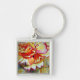 Gul Begonia-blomma akvarell original konst Fyrkantig Silverfärgad Nyckelring