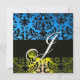 GUL BLÅ SVART DAMAST STOR MONOGRAM Topaz Inbjudningar