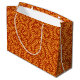 Sömlöst upprepande mönster med stiliserade gyllene gula bladiga vinrankor mot en rik terrakotta röd bakgrund.