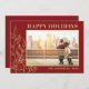 Det är dekorerat med gult bladverk och bär på en burgunderröd bakgrund.