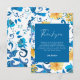 Gul blomster blå italiensk bröllopsfest tack kort