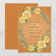 En varm, konstnärlig design med penselmålade gula rosor och påskliljor arrangerade i en svepande botanisk krans. Frodig grön lövverk kompletterar de mjuka blomster elementen och skapar en romantisk och eterisk stämning. Den övergripande paletten frammanar en vintage charm, perfekt för en minnesvärd tillställning.
