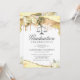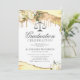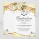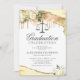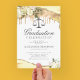 Eleganta juristexamen-inbjudningar med gula och gyllene glitteragate kristallkanter, vita vattenfärgblommor, rättvisevågen och en formell festmall som är enkel att anpassa.