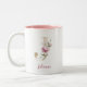 Gul bokstav J, Monogram J, Rosa blommig present ti Två-Tonad Mugg