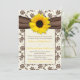 Vacker gul, brun och elfenbensfärgad blomster-damask solros och band bröllopsinbjudan.