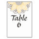 Modern design med handritad blommande mandala i gult och brunt med anpassningsbar text på fram- och baksida