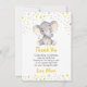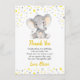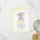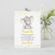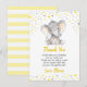 Personlig tacksamhetskort i gul och grå elefant för en babys födelsedagsfest. Helt anpassningsbar med din egen text. Tillverkad för att matcha vår samling av gula och grå elefanter.