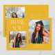 Modern och fantasifull examensannonshäfte fotokort med 2 bilder på framsidan och 1 på baksidan. Texten säger "TACK" med glittrande stjärnor. Lägg till examenstudentens namn, information och meddelande för att anpassa detta kort. Gul.