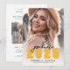 Klassisk minimalistisk examensbevis & festinbjudan. Framsidan har ett helsidesfoto med en vit gradient längst ner som smidigt övergår i bilden. Över gradienten visas "2026" i en fet, klassisk skolstil-font i guldgult. Ovanför året står "Graduate" i en scriptfont, som kan ändras till "Class of" om så önskas. Under året visas examenens namn och skolans namn elegant. Den nuvarande designen använder svarta och gyllene toner för en tidlös och sofistikerad look, men alla färger kan anpassas för att matcha skolans färger eller personliga preferenser.
