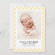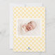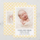 Gul Gingham Baby Födelse Annonserings Fotokort Meddelande