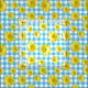 Linda Baysinger hack gladlynt ljusa gula daisyblommadesign, på turkos- och vitginghamkontrollbakgrund.