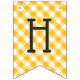 Grattis på födelsedagenmeddelande i svart på gult- och vitlandgingham.