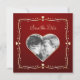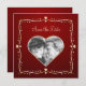 Personlig Spara datum-anmälan med gula hjärtan på mörkröd bakgrund.