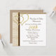 Elegant femtioårs bröllopsjubileum fest inbjudan i fyrkantig form, med ett tan- och vitt damastmönster till vänster och två gyllene hjärtaccent. Personifiera den bruna texten för ditt speciella 50-års bröllopsjubileum.