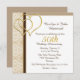 Elegant femtioårsjubileum för bröllopsfirande i fyrkantformat, med ett tan- och vitt damastmönster till vänster och två gyllene hjärtaccent. Personifiera den bruna texten för ditt speciella 50-årsjubileum.