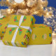 Gul julhälsning & Nyårspapper för presentinslagnin Presentpapper