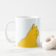 Gul kattteckning på polka dotsbakgrund kaffemugg
