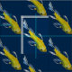 Tyg som presenterar målning för konst för akvarellen för den gula carpkoifisken original-, avbildar vid konstnären Sacha Grossel. Shows för denna fria flödande asiatiska stilkonst koien som downstream simmar. Koi är ett symbol av lycka till och bra Feng Shui i asiatisk kultur. Bakgrundsfärgen är fullständigt customisable att passa din smak som det är showen här i traditionell japansk marinblå stil.