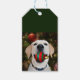 Unga gultens labrador håller en julprydnad i munnen och tror att han har hittat sin söta hundälskare boll-märkre