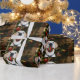 Barn gulnar den labrador retrieveren har funnit hans julklapp eller erbjuder dig en….,en boll i hans varar besvärad men i verkligheten en helgdag för julprydnadhund älskare som slår in papper
