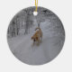 Gul lab leka i ny vintersnö julgransprydnad keramik