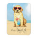 Det är ett hund liv! Var coola och fira sommardagarna med den här söta gulten Labrador Retriever-valpen med solglasögon och avslappning med en drink.