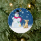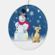Gul Labrador Retriever och snögubbe Julgransprydnad Keramik