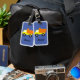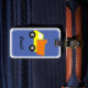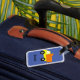 Anpassade bagagetaggar. Blå bakgrundsversion.