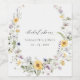 Gul lila vildbloms krans bröllopsfest vinflaska etikett
