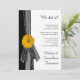 Denna mottagningsinbjudan presenterar en charmig och modern design. Den har ett svart-vit-randigt och prickigt band, som är prytt med en ljusgul blomma. Bandet är placerat vertikalt längs vänster sida av inbjudan, vilket ger en djärv kontrast mot den i övrigt vita bakgrunden. Typografin är ren och elegant, med svarta typsnitt som balanserar sofistikation med klarhet. Paret namn och evenemangets detaljer är arrangerade i en strukturerad och visuellt tilltalande layout, vilket gör inbjudan både förtjusande och särpräglad.