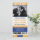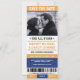 Sportbiljett-tema sparade datum-inbjudningar är coola och roliga! De ser ut som en sportbiljett för att fira evenemanget av säsongen. Färgpalett i blått och gult. Kontakta för anpassade färger.