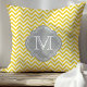 Gul och grå chevron-monogram kudde