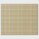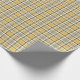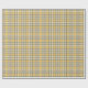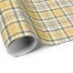 Inpackning av papper med Plaidwerx ett original- plädmönster i smörgult, svart, taupe och elfenben.